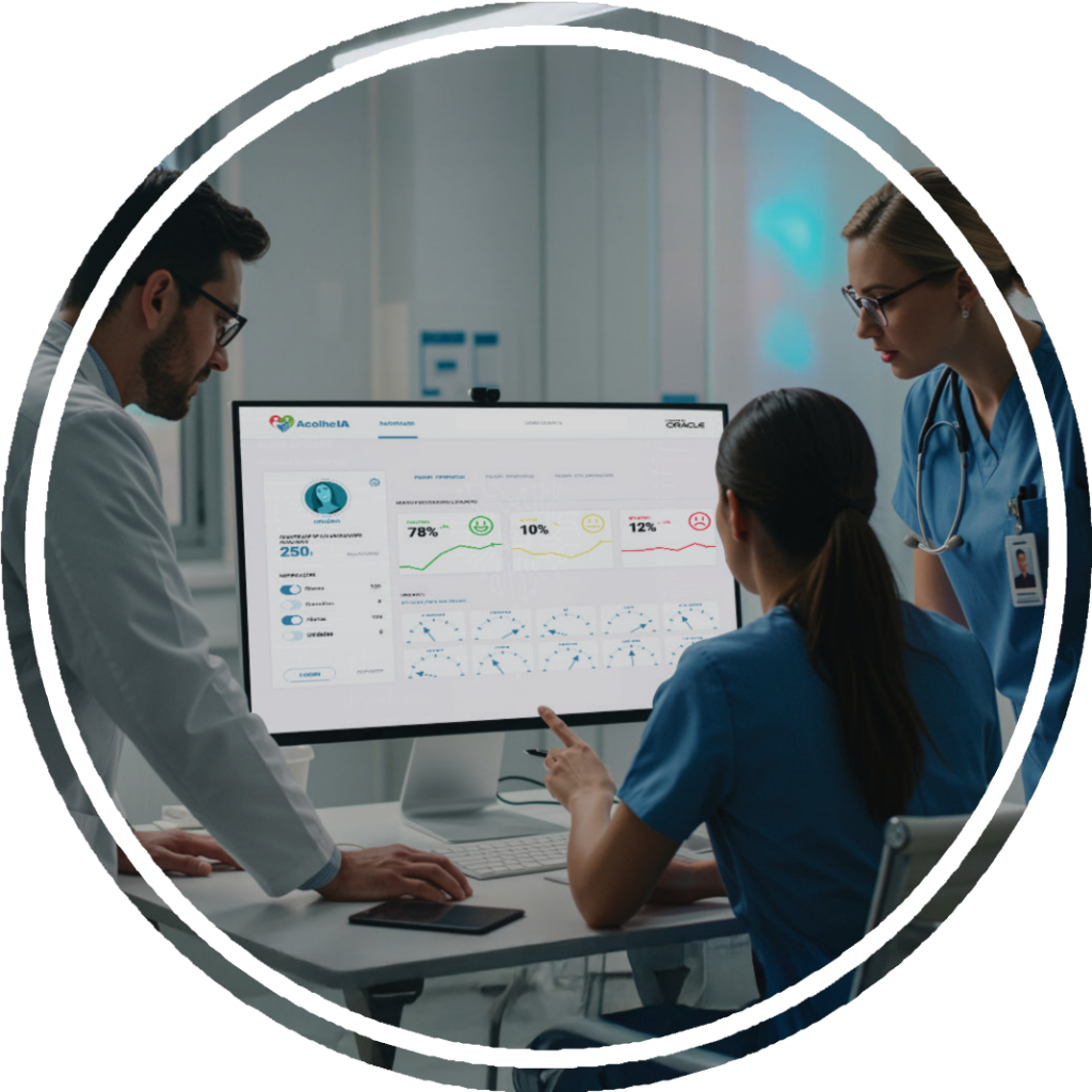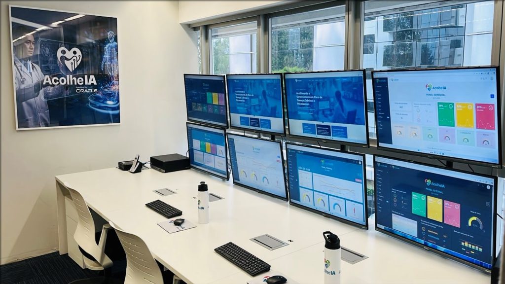 Nossa central de gerenciamento e tomada de decisões, onde os dados clínicos são acompanhados e avaliados pela nossa equipe de saúde, e as ações de acolhimento e orientação são realizadas