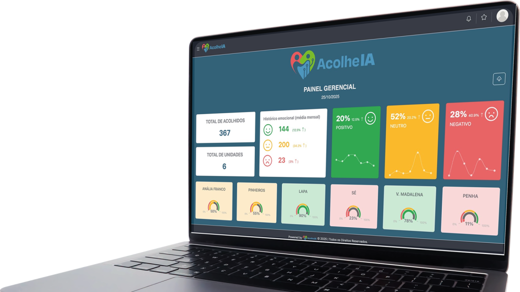 Plataforma gera relatórios gerenciais, controle de indicadores e histórico de acolhimento para conformidade imediata.